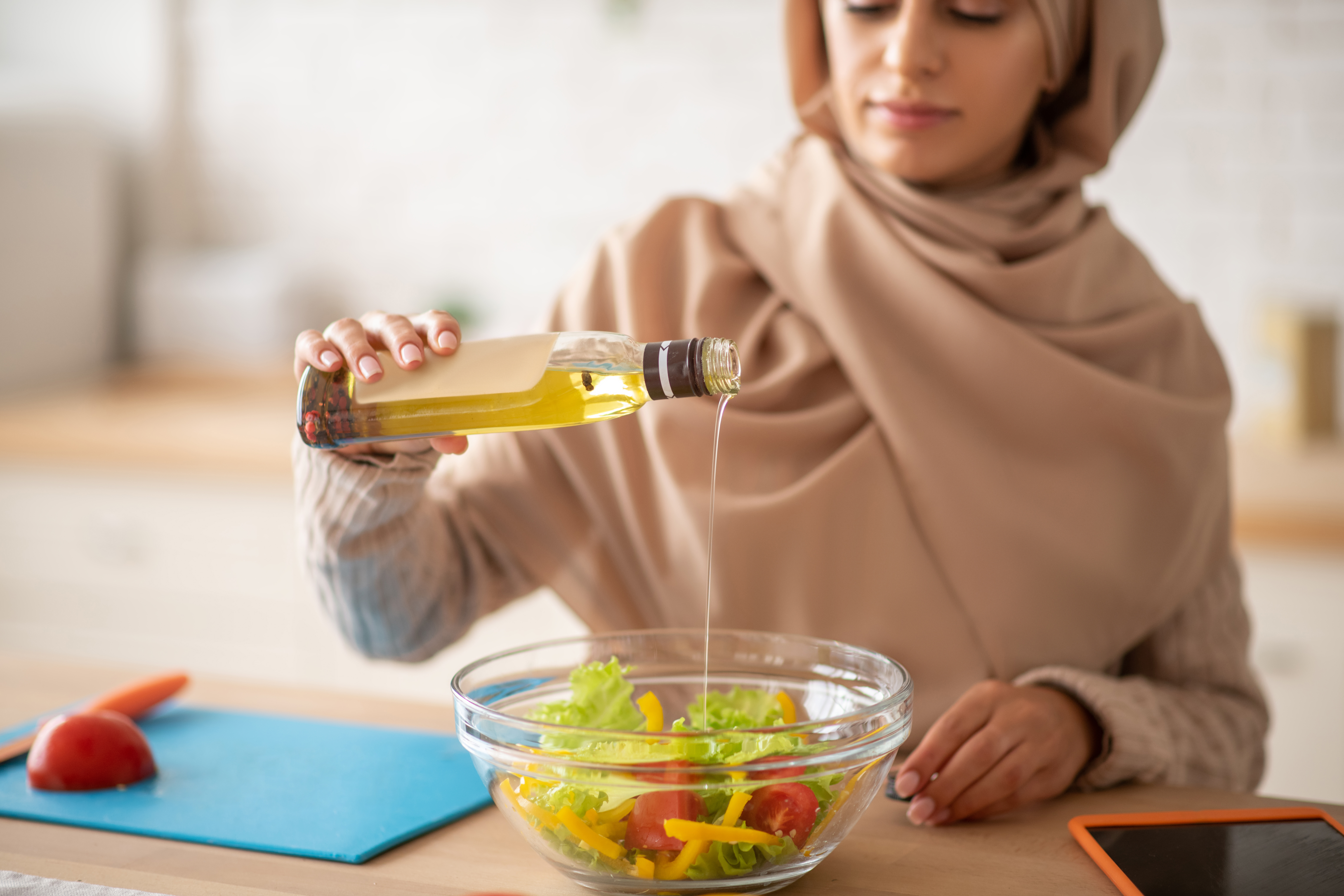 Close up of a bowl of salad with oil. Photo Credit: Envato @Zinkevych_D